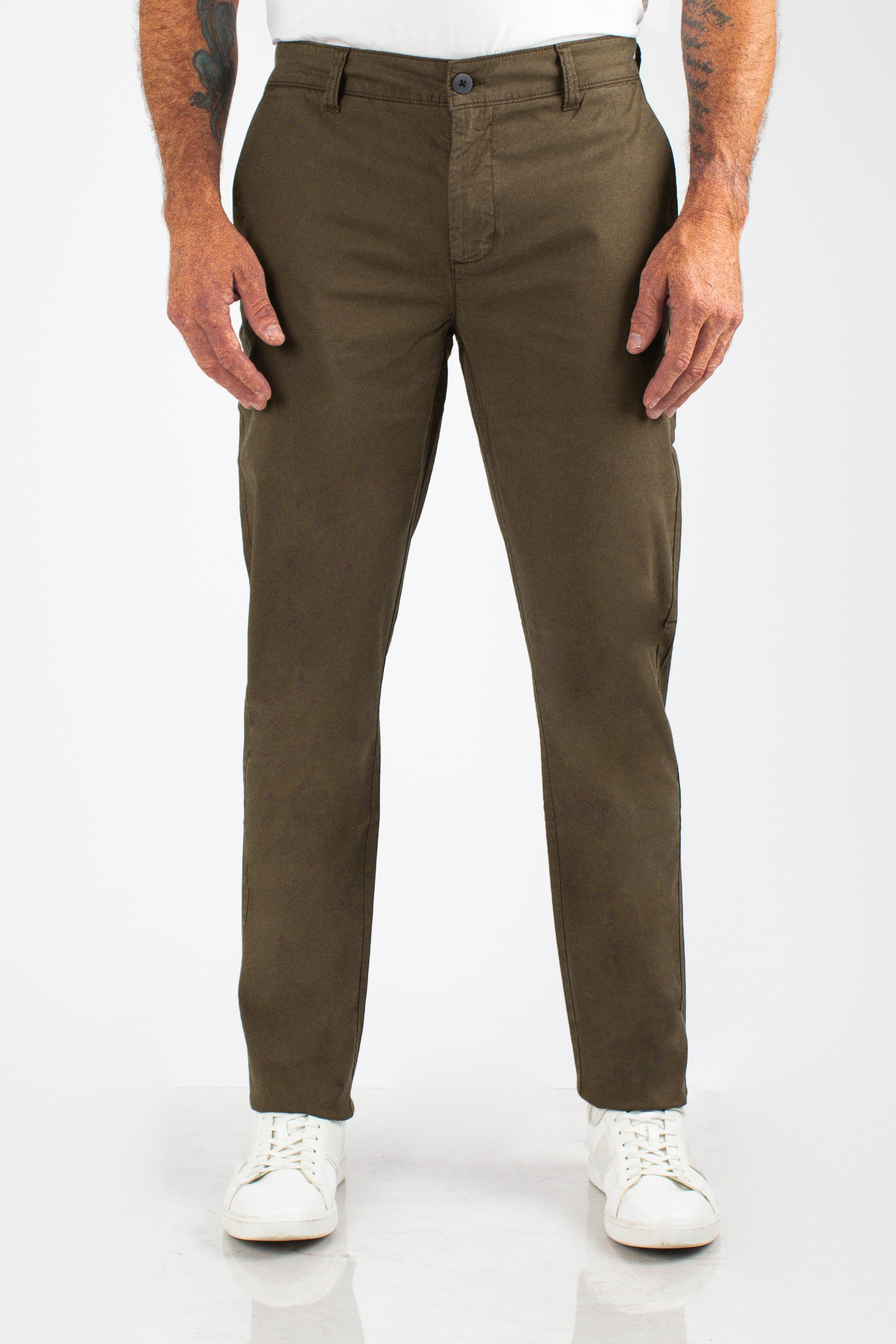 Army is a versatile deep green wash with a clean finish. A modern alternative to traditional neutrals, it adds subtle color to your wardrobe while remaining easy to pair with shirting, knits, or casual tees.