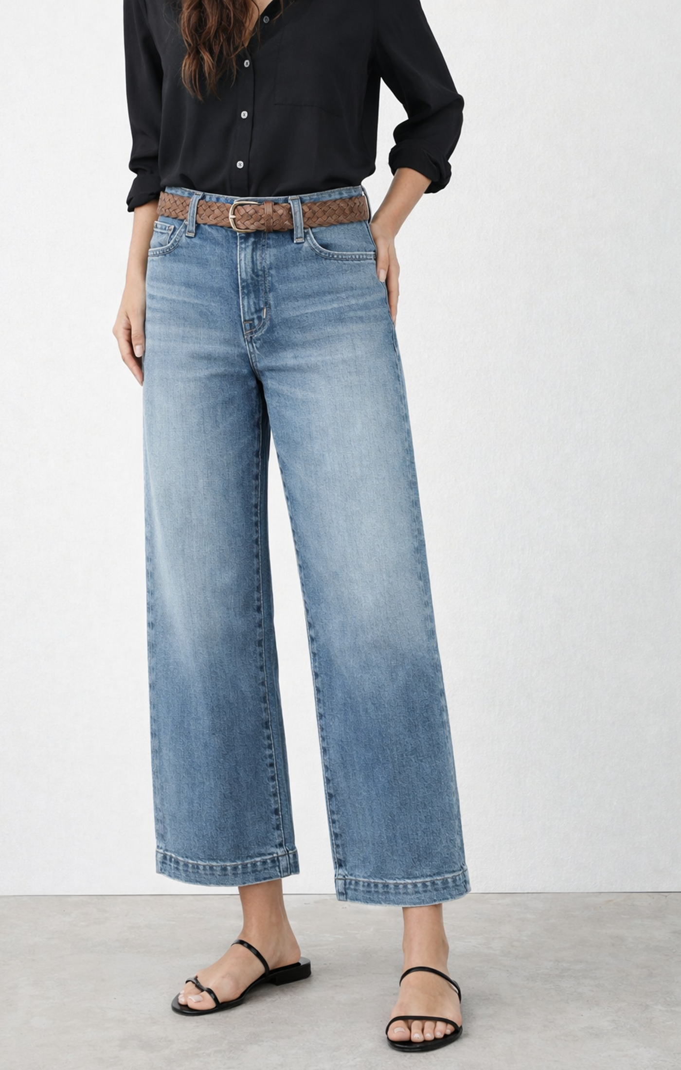 High-rise wide cropped fit.
