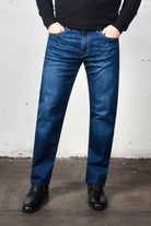 ROYALTON DARK is a dark, moody indigo with a twist—a true blue-black wash featuring a hint of black overcast and soft abrasion throughout.