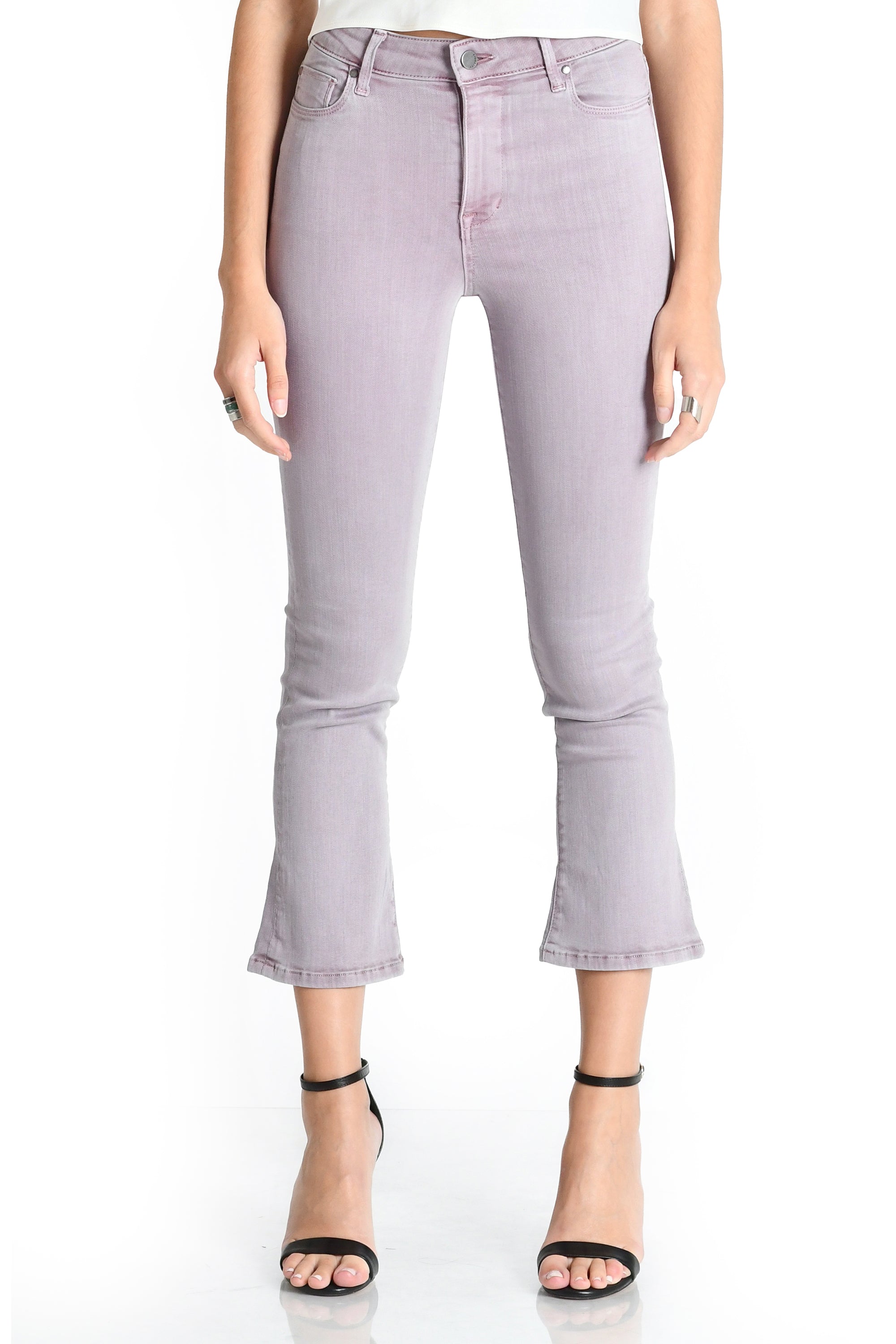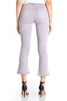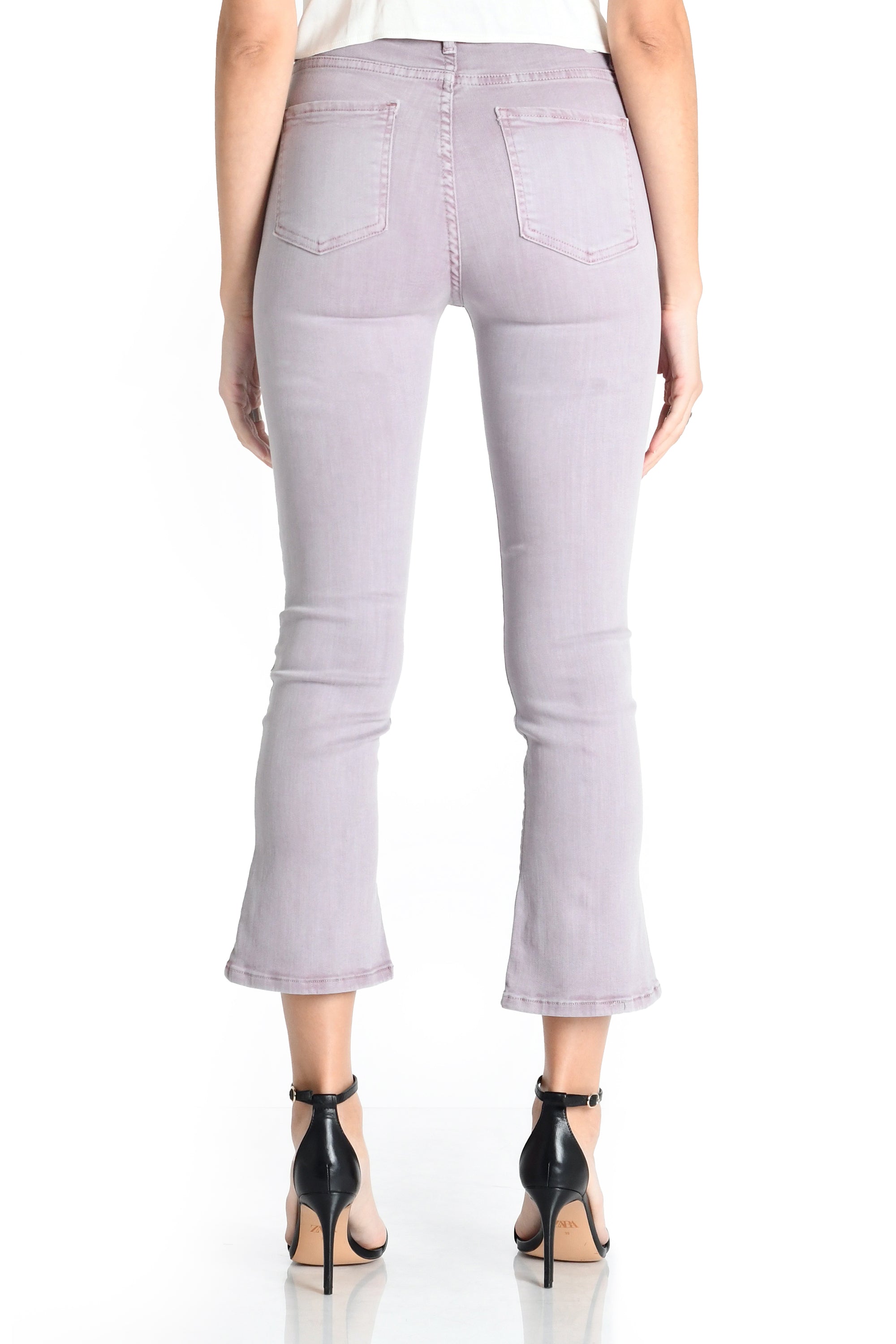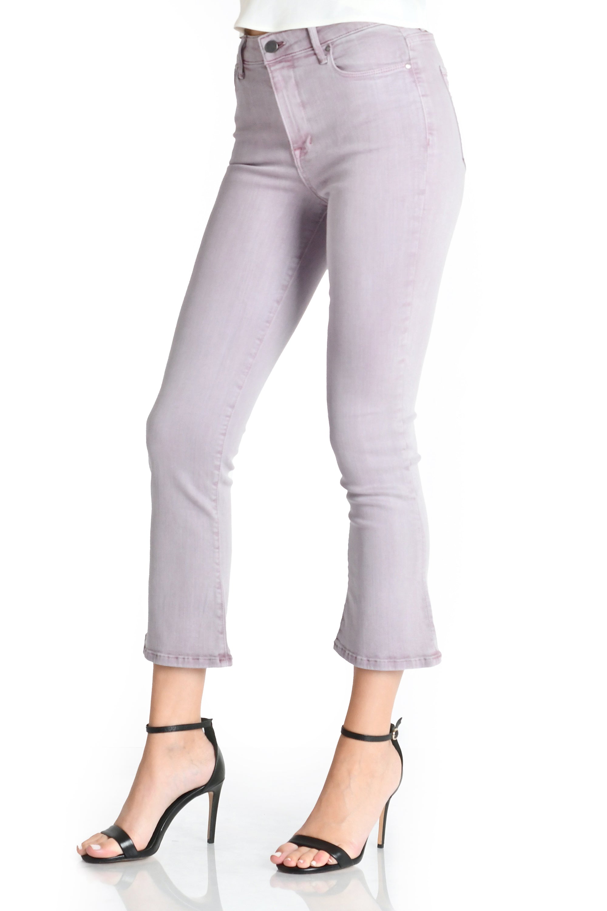 Our fan favorite mini boot crop in this fun pale purple. This pant is slim at the top and tapers down the leg with a cropped flare. Made with our Bianca fabric that has a nice amount of stretch but still thick enough for opacity.