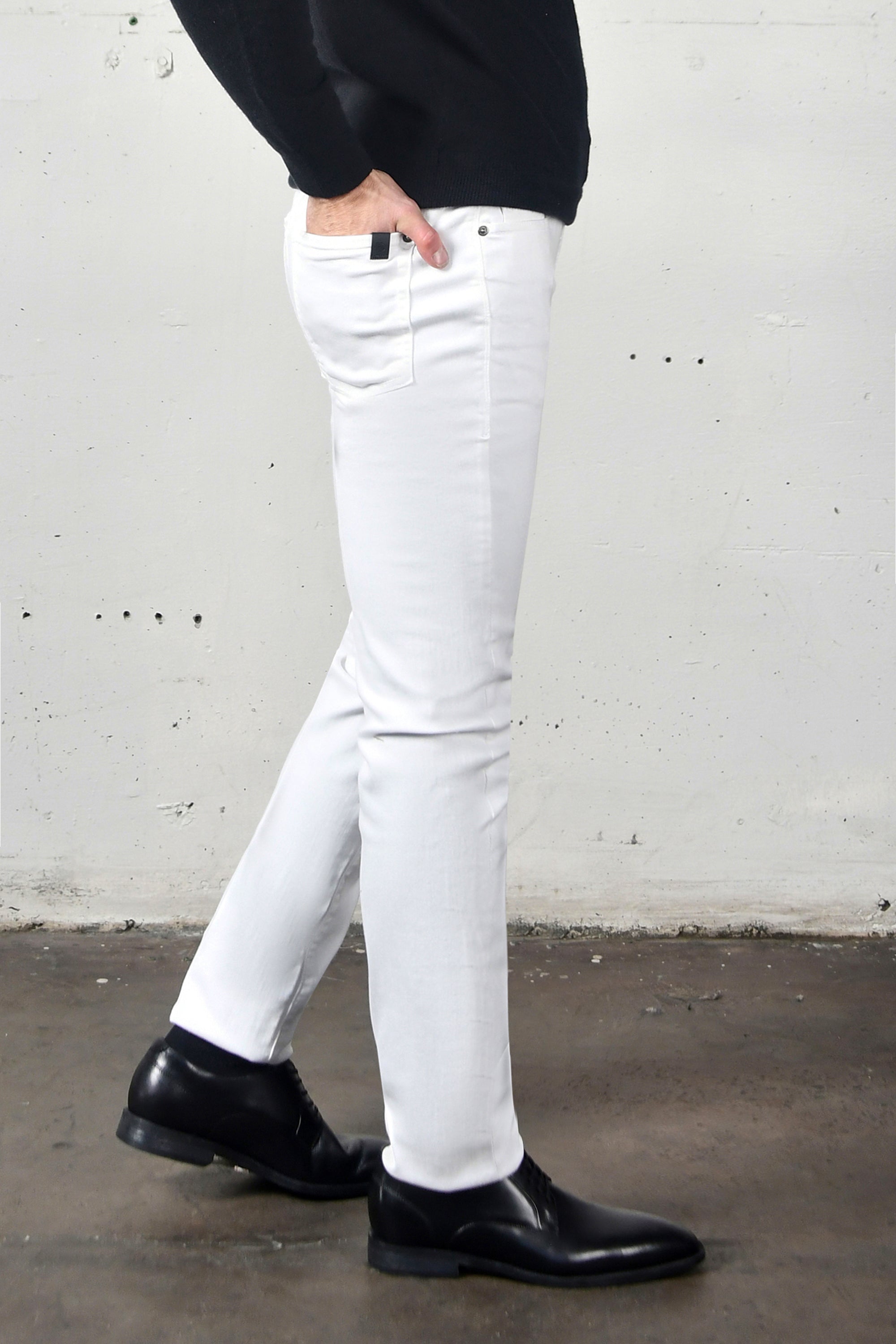The Torino is our signature slim fit—modern through the thigh, tailored at the leg, and finished with a clean 14" opening. It’s easy through the hip without ever feeling loose. Refined, versatile, and effortless, made for the guy who wants a sleek silhouette without sacrificing comfort.
