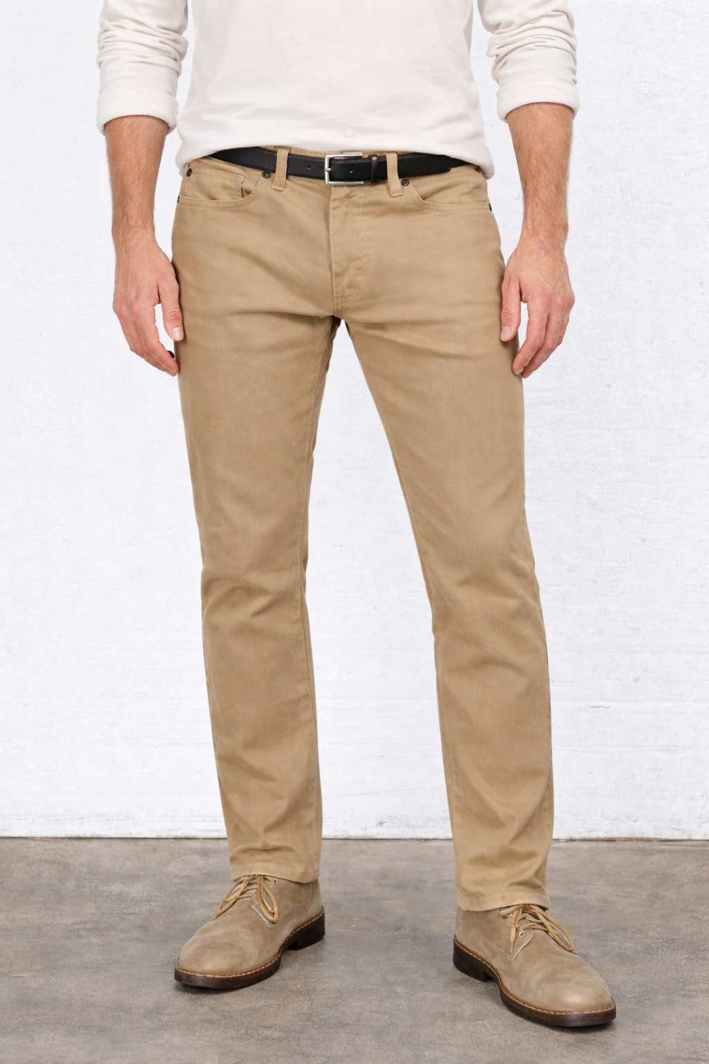 The Torino is a slim fit with room through the thigh, a tailored leg, and a 14" leg opening.